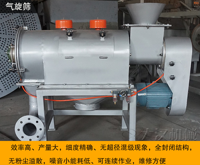 我公司設(shè)計(jì)生產(chǎn)的硫磺粉專用氣流篩是一種對(duì)微細(xì)粉進(jìn)行有網(wǎng)篩分的高精度篩分設(shè)備,可對(duì)細(xì)度范圍在80-500目內(nèi)的粉狀物料很好的連續(xù)篩分,篩網(wǎng)可任意更換。篩分效率高、產(chǎn)量大,細(xì)度、無超徑混級(jí)現(xiàn)象,全封閉結(jié)構(gòu),無粉塵溢散,噪音小能耗低、可連續(xù)作業(yè),維修方便。 本設(shè)備篩網(wǎng)為圓筒狀,置于機(jī)體內(nèi),物料通過螺旋輸送系統(tǒng)后,和氣流混合、霧化進(jìn)入網(wǎng)筒內(nèi).通過網(wǎng)筒內(nèi)風(fēng)輪葉片使物抖同時(shí)受離心力和旋風(fēng)推進(jìn)力,從而迫使物抖噴射過網(wǎng),由細(xì)料排出口排出,不能過網(wǎng)的物科沿網(wǎng)篩筒壁從粗料排出口排出,篩分能力非常強(qiáng),防止了堵網(wǎng)發(fā)生,能提高生產(chǎn)效率。